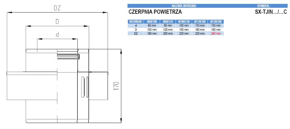 Czerpnia powietrza TURBO izolowana nierdzewna 100/150