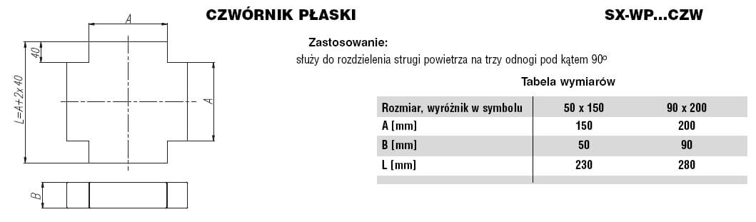 Czwórnik płaski ocynkowany 90x200