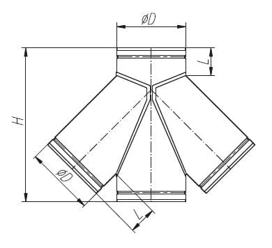 Służy do rozdzielenia strugi powietrza na trzy odnogi pod kątem 45o.