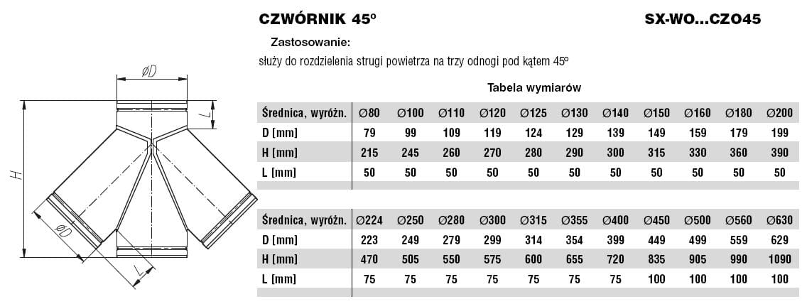Czwórnik wentylacyjny ocynkowany fi315 45 stopni
