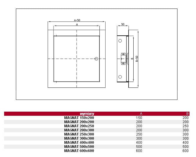 Drzwiczki rewizyjne metalowe MAGNAT 300x300 nierdzewne z kluczykiem