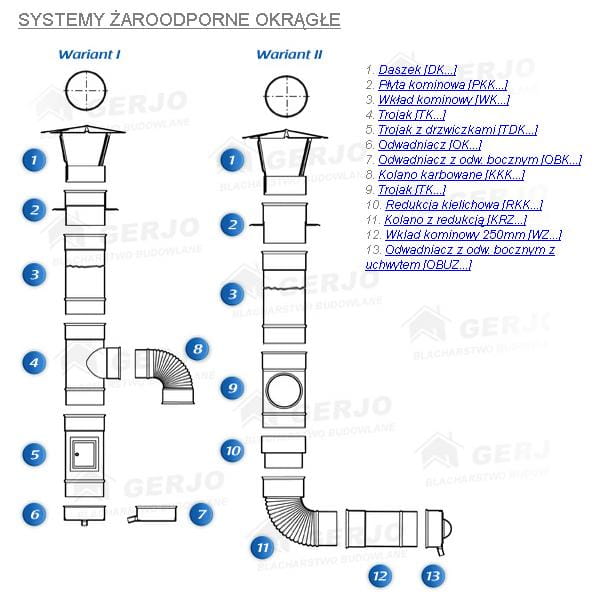 W związku z występowaniem wewnątrz komina wysokich temperatur elementy systemu żaroodpornego owalnego zostały wykonane z blach o grubości 1mm gwarantując wysoką odporność termiczną. Ważne jest aby w pomieszczeniach kotłowni, bądź środowisku z którego pobierane jest powietrze nie występowały związki chloru czy fluoru (np. pralnie chemiczne).