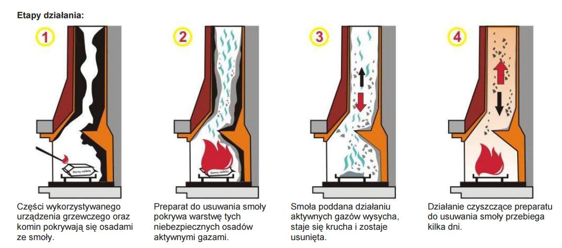 Efektywny środek do usuwania smoły - do czyszczenia i konserwacji kominków/kotłów i urządzeń rozpalanych drewnem i węglem.