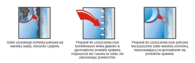 i innych zanieczyszczeń. Efektywnie czyści spaleniznę ze szklanych powierzchni, odtłuszcza je. Preparat do czyszczenia kominków