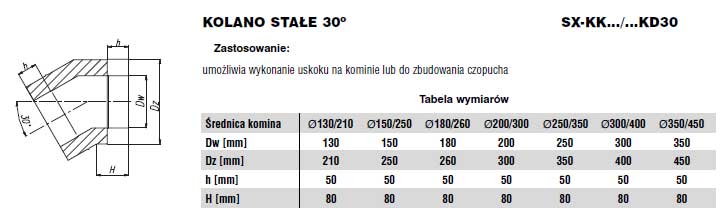 Kolano 15o lub 30o lub 45o