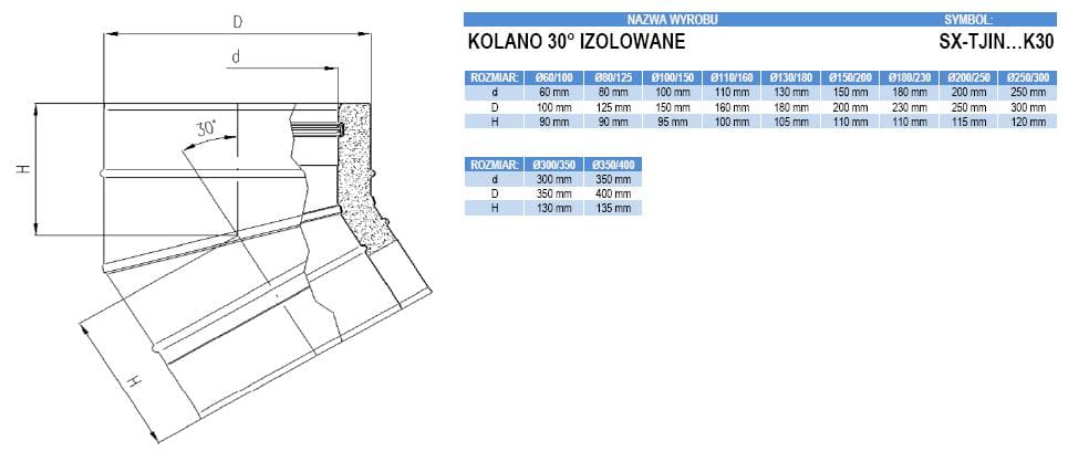 Służy do budowania systemu spalinowego izolowanego ze zmianą kierunku przepływu o 15, 30 lub 45 stopni.