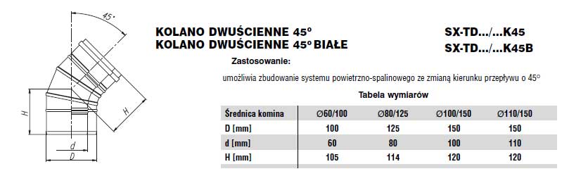 Umożliwia zbudowanie systemu powietrzno-spalinowego ze zmianą kierunku przepływu o kąt 15o lub 30o lub 45o