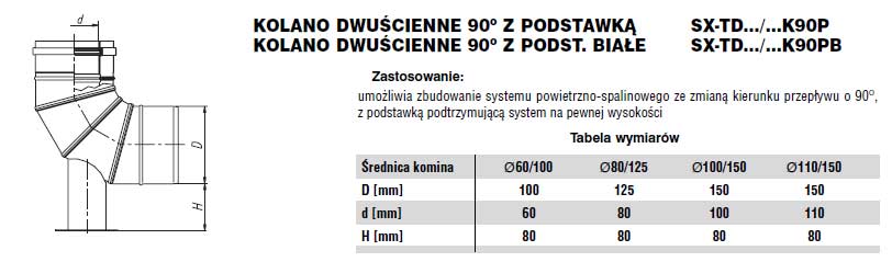 Umożliwia zbudowanie systemu powietrzno-spalinowego ze zmianą kierunku przepływu o 90o z podstawką podtrzymującą system na pewnej wysokości.