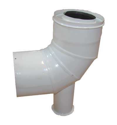 Kolano dwuścienne 90 stopni z podstawką fi80/125 Białe