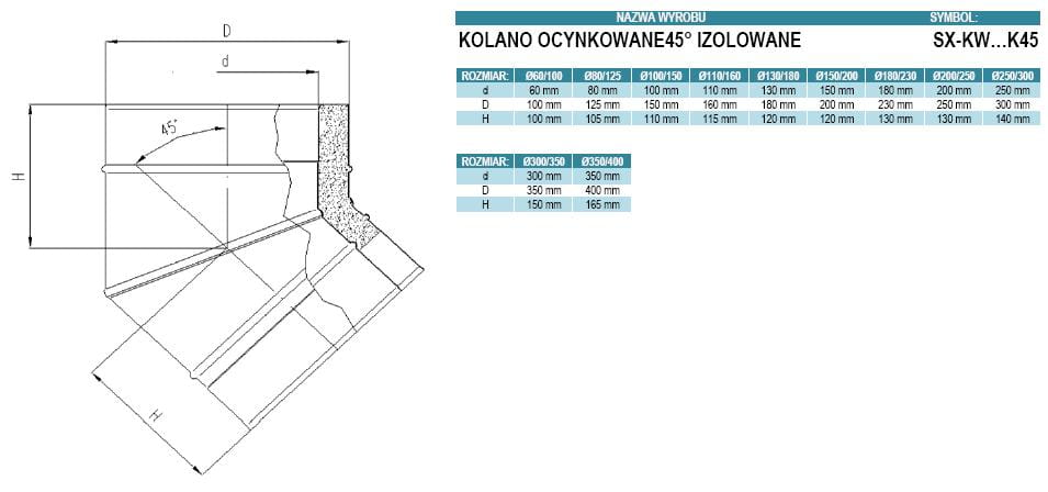 Kolano izolowane ocynkowane 15, 30, 45 stopni fi110/160