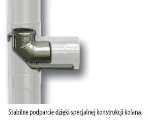 Unikalnym rozwiązaniem kolana jest także podstawka o kształcie zapewniającym stabilne podparcie kolana w odpowiednim miejscu, która dodatkowo przenosi ciężar całego systemu spalinowego na trójnik istniejącego wkładu.