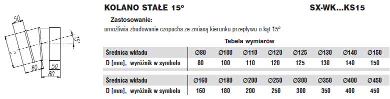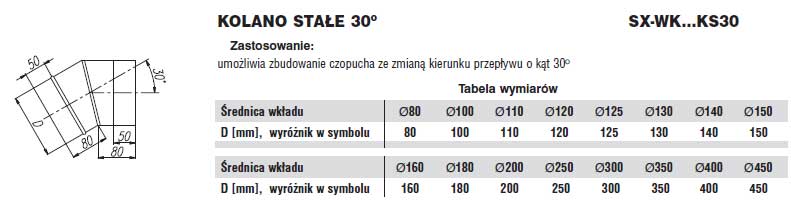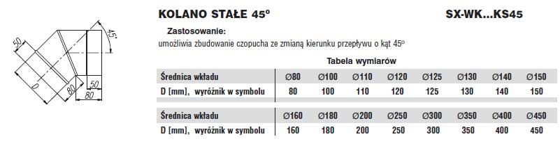 Umożliwia zbudowanie czopucha ze zmianą kierunku przepływu o kąt 15o lub 30o lub 45o.