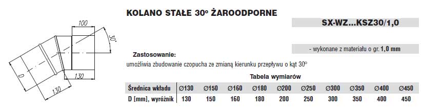 Wszystkie elementy proponowanych wkładów żaroodpornych wykonane są z blachy o grubości 1,0mm. Kielichowe połączenia poszczególnych elementów o długości 100mm, zapewniają szczelność oraz kompensację wydłużeń liniowych wkładu wynikających z możliwości wystąpienia bardzo wysokich temperatur. Oferowane są w zakresie średnic 130mm do 450mm.