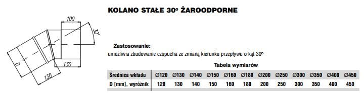 Wszystkie elementy proponowanych wkładów żaroodpornych wykonane są z blachy o grubości 1,0mm. Kielichowe połączenia poszczególnych elementów o długości 100mm, zapewniają szczelność oraz kompensację wydłużeń liniowych wkładu wynikających z możliwości wystąpienia bardzo wysokich temperatur. Oferowane są w zakresie średnic 120mm do 450mm.
