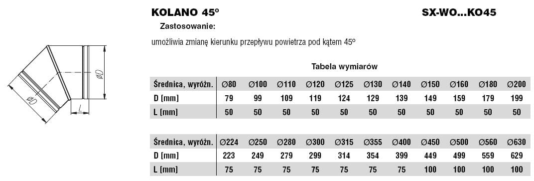 Umożliwia zmianę kierunku przepływu powietrza pod kątem 45o.