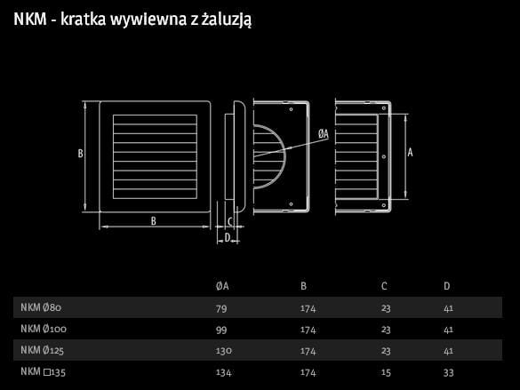 Kratka kwadratowa z żaluzją NKM fi80 biała