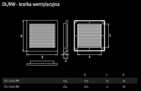 Kratka wentylacyjna DL/RW 165/165 biała