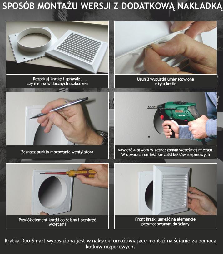 - Posiada dodatkową nakładkę montażową