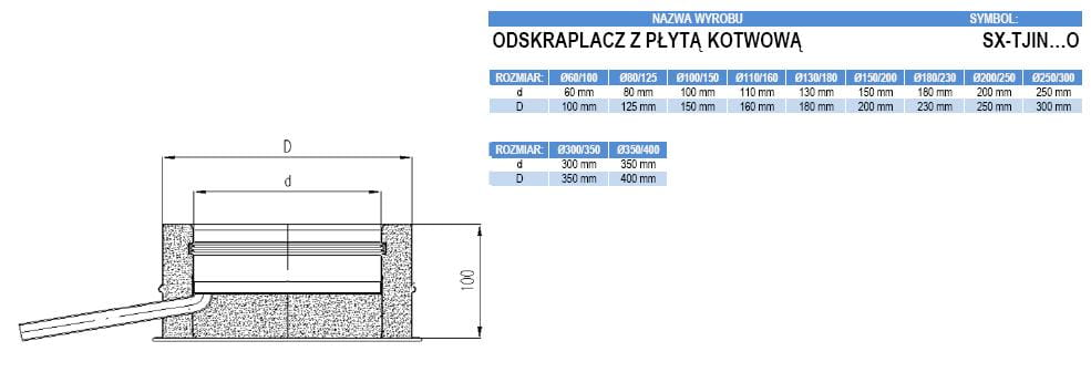 Odskraplacz TURBO z płytą kotwową izolowany nierdzewny 200/250