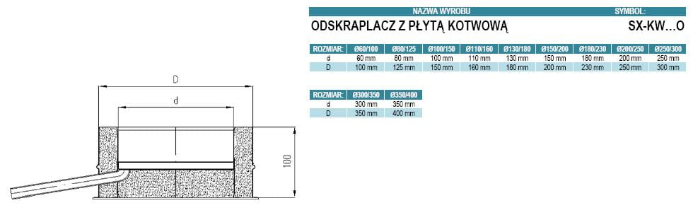 Odskraplacz izolowany ocynkowany z płytą kotwową fi100/150
