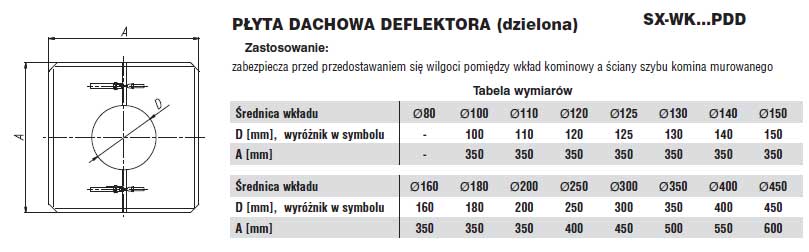 Płyta dachowa wywiewki (jednoczęściowa) lub deflektora (dzielona). Proszę wybrać korzystając z pola wyboru.