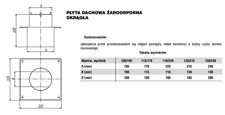 Zabezpiecza przed przedostawaniem się opadów pomiędzy wkład kominowy a ściany szybu komina murowanego.