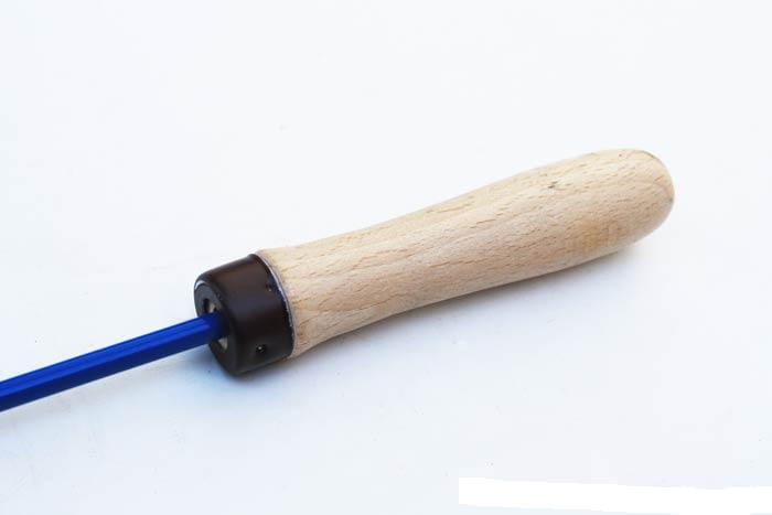 Końcówka pogrzebacza została wygięta w odpowiedni sposób tak aby praca nim była wygodniejsza i efektywniejsza. Drewniana rączka zapewnia wygodne użytkowanie chroniąc jednocześnie rękę przed oparzeniem.