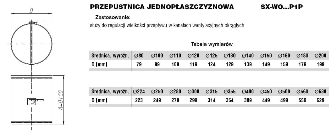 Przepustnica jednopłaszczyznowa wentylacyjna ocynkowana fi315