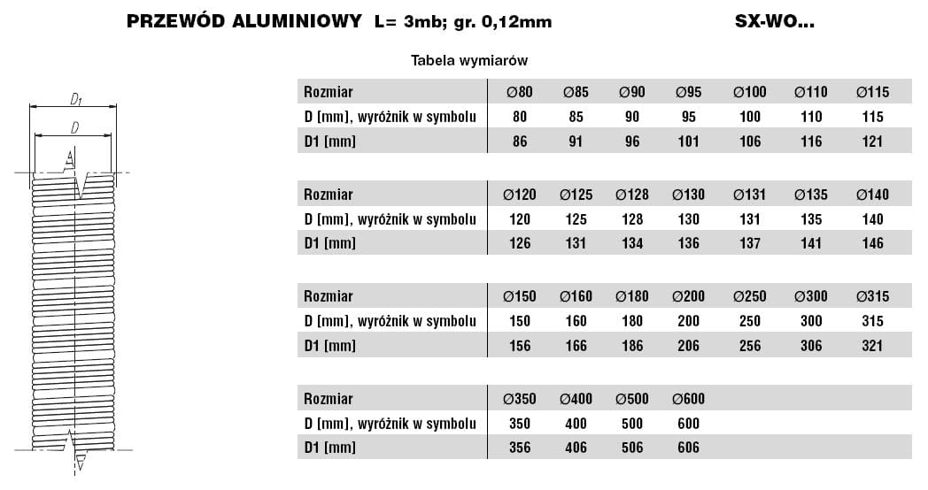Przewód elastyczny ALU fi110 3mb 0,12mm