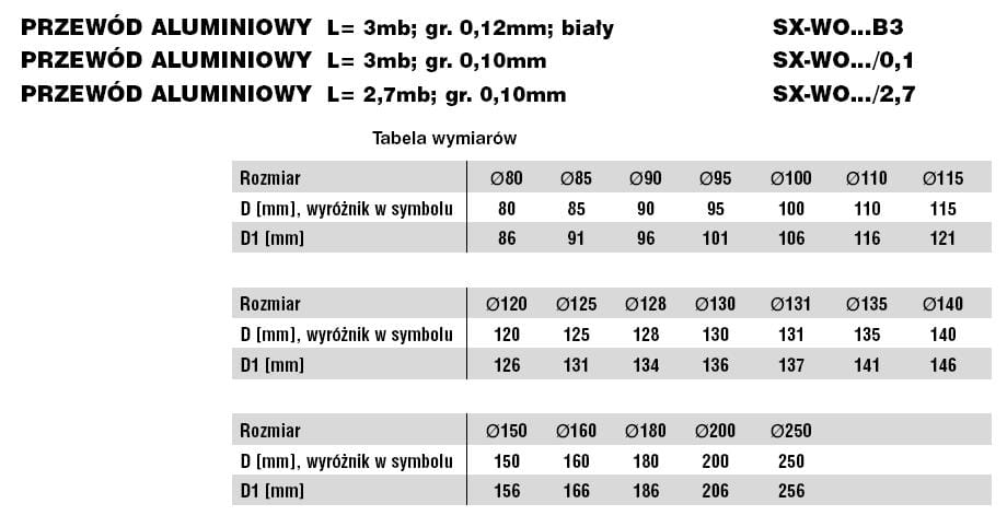 - Materiał: taśma aluminiowa gr. 0,10mm