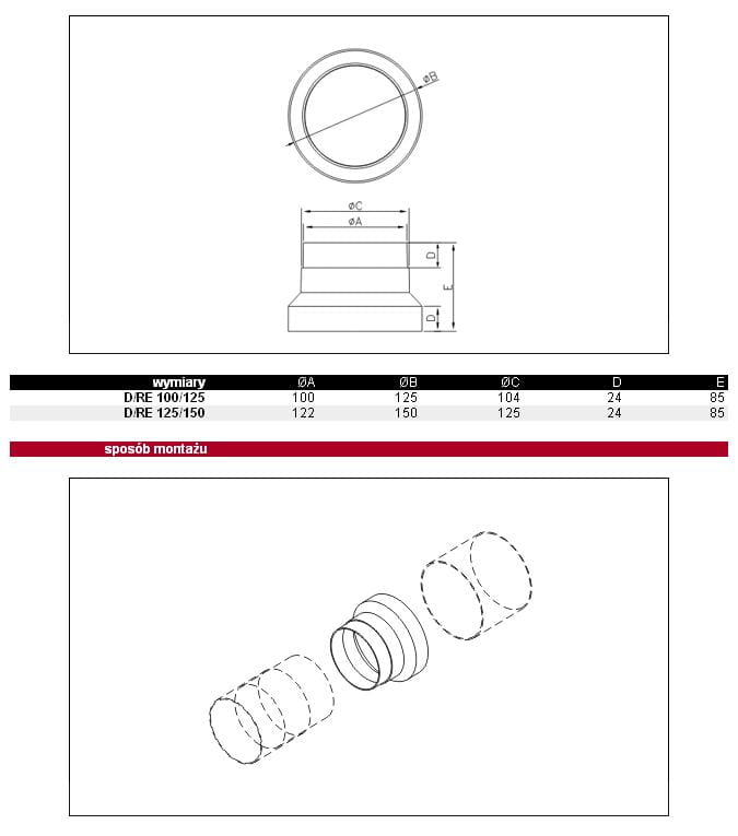 Służy do redukowania, kanałów okrągłych o średnicy fi 100/125mm