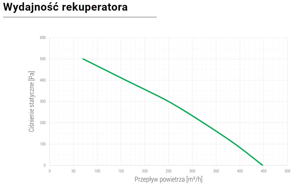 Maksymalny przepływ powietrza (przy 100Pa): 450m³/h