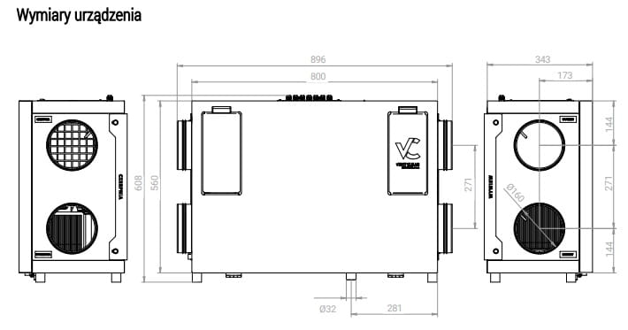 5. Standardowe przyłącza - Standardowej wielkości przyłącza wentylacyjne 160 mm zapewniają bezproblemowy montaż, cichą pracę i zadowalającą wydajność urządzenia.