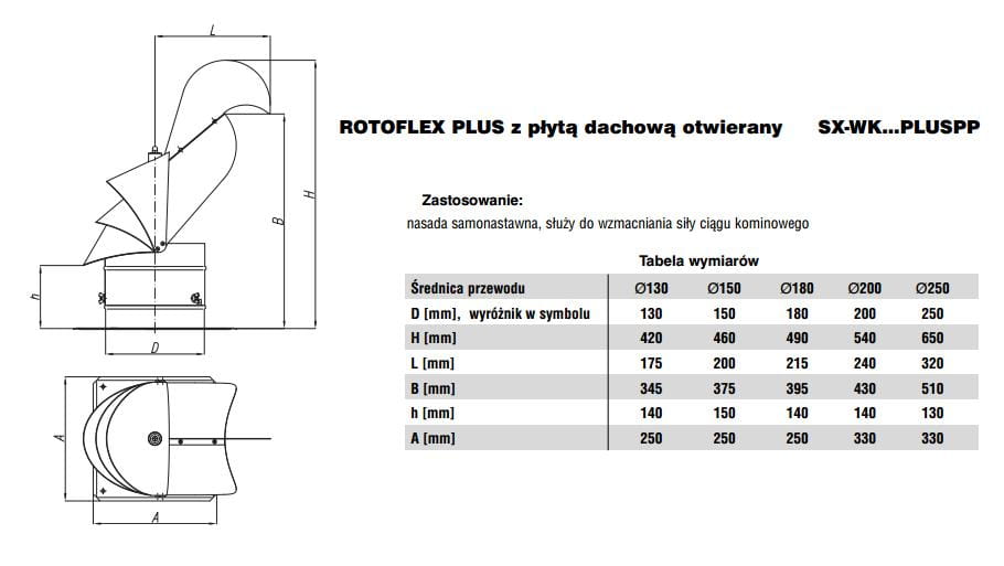 Nasady kominowe typu Rotoflex PLUS są urządzeniami wykorzystującymi siłę wiatru do wspomagania ciągu kominowego.