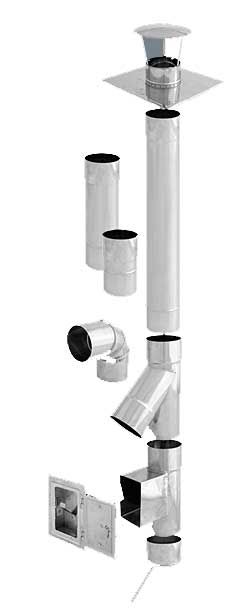 Mocujemy linę do rury o długości 1m, wpuszczamy ją do szybu do momentu wystawania jedynie kielicha, zakładamy kolejną rurę, zwracając uwagę na całkowite wsunięcie jednej rury w kielich drugiej i znowu opuszczamy, aż do momentu wystawania kielicha. Czynności te powtarzamy, aż w wykutym otworze pojawi się końcówka pierwszej rury. Instalujemy trójnik, wyczystkę i odskraplacz, a następnie łączymy je z rurami. Ostatnią rurę wystającą z komina przycinamy na długość taką, aby można było za montować w kielichu ostatniej rury płytę dachową i przykręcić ją do korony komina. W płycie dachowej montujemy wywiewkę. Usytuowanie trójnika uzależnione jest od sposobu poprowadzenia czopucha z kotła. (Przy czopuchach o przekrojach innych niż okrągły, wykonujemy także trójniki lub redukcje na specjalne zamówienie klienta). Drzwiczki wyczystki powinny być tak ustawione, aby była możliwość swobodnego dostępu do wyczystki. Ponadto w odnodze wyczystki, za drzwiczkami, powinna znajdować się przegroda ogniowa, uniemożliwiająca wypadanie żaru bezpośrednio po otworzeniu drzwiczek (u nas drzwiczki żaroodporne oferowane są w komplecie z przegrodą ogniową). Skropliny powinny być odprowadzane do neutralizatora skroplin, szczelnego pojemnika lub bezpośrednio do kanalizacji (o ile dopuszczają takie rozwiązanie przepisy prawne).