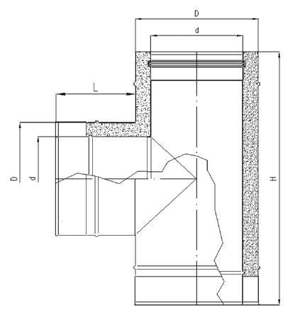 Trójnik 90 stopni TURBO izolowany nierdzewny 200/250