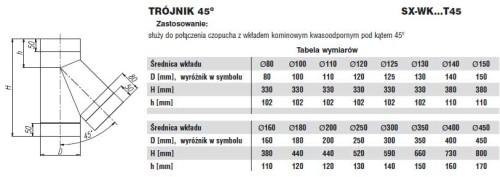 Służy do połączenia czopucha z wkładem kominowym pod kątem 45o.