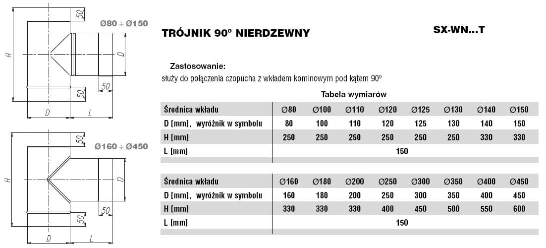 Służy do połączenia czopucha z wkładem kominowym pod kątem 90o.