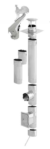 Mocujemy linę do rury o długości 1m, wpuszczamy ją do szybu do momentu wystawania jedynie kielicha, zakładamy kolejną rurę, zwracając uwagę na całkowite wsunięcie jednej rury w kielich drugiej i znowu opuszczamy, aż do momentu wystawania kielicha. Czynności te powtarzamy, aż w wykutym otworze pojawi się końcówka pierwszej rury. Instalujemy trójnik, wyczystkę i odskraplacz, a następnie łączymy je z rurami. Ostatnią rurę wystającą z komina przycinamy na długość taką, aby można było za montować w kielichu ostatniej rury płytę dachową i przykręcić ją do korony komina. W płycie dachowej montujemy wywiewkę. Usytuowanie trójnika uzależnione jest od sposobu poprowadzenia czopucha z kotła. (Przy czopuchach o przekrojach innych niż okrągły, wykonujemy także trójniki lub redukcje na specjalne zamówienie klienta). Drzwiczki wyczystki powinny być tak ustawione, aby była możliwość swobodnego dostępu do wyczystki. Ponadto w odnodze wyczystki, za drzwiczkami, powinna znajdować się przegroda ogniowa, uniemożliwiająca wypadanie żaru bezpośrednio po otworzeniu drzwiczek (u nas drzwiczki żaroodporne oferowane są w komplecie z przegrodą ogniową). Skropliny powinny być odprowadzane do neutralizatora skroplin, szczelnego pojemnika lub bezpośrednio do kanalizacji (o ile dopuszczają takie rozwiązanie przepisy prawne).