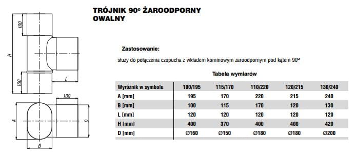 Służy do połączenia czopucha z wkładem kominowym owalnym pod kątem 90o.