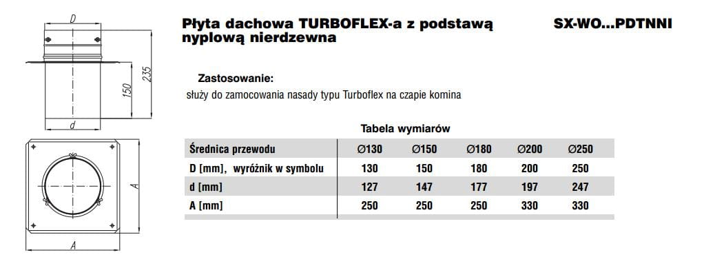 Turboflex Płyta dachowa fi160 - 250x250 z podstawą nyplową nierdzewna