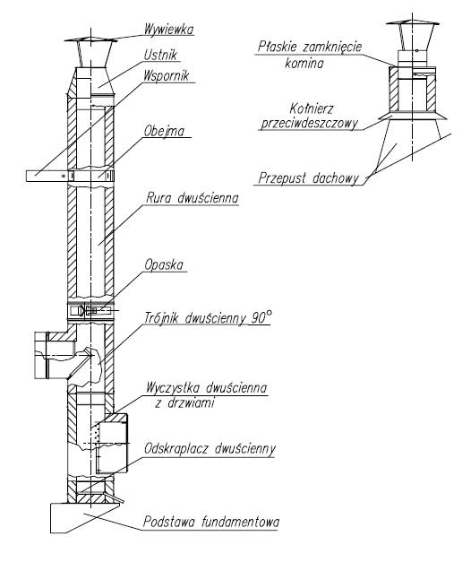 Zdarza się niekiedy, że w ogrzewanym obiekcie nie ma komina murowanego lub skorzystanie z niego jest niemożliwe, więc niezbędne jest inne uniwersalne rozwiązanie odprowadzenia spalin z urządzenia grzewczego. Jak zwykle potrzeba rodzi rozwiązanie, a takim jest w tym przypadku zewnętrzny kwasoodporny komin dwuścienny izolowany.