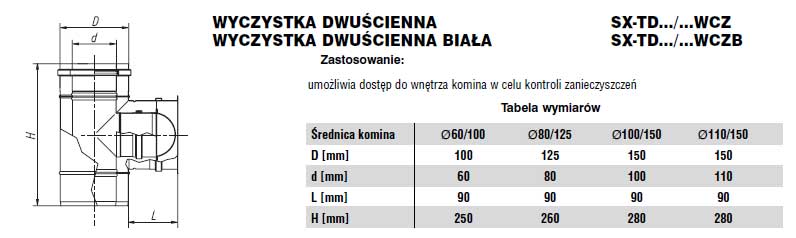 Wyczystka dwuścienna fi80/125 Nierdzewna