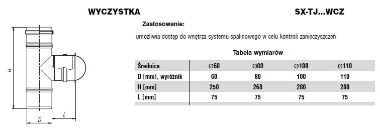 Wyczystka jednościenna fi80 Nierdzewna