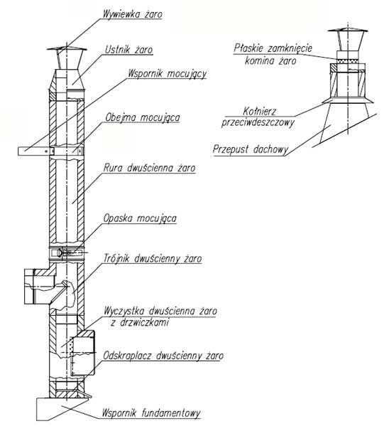 Niejednokrotnie chęć posiadania kominka w domku letniskowym wymusza znalezienie takiego rozwiązania, aby było sprawne i bezpieczne, a jak to uczynić jeśli w samym domku brak komina ceramicznego, a ściany i stropy są drewniane? To jest jeden z typowych problemów, ale jest ich znacznie więcej, choćby ze względu na rodzaj paliwa, przy kominkach lub kotłach opalanych drewnem. Rozwiązanie jest w naszej ofercie – żaroodporny komin dwuścienny izolowany.