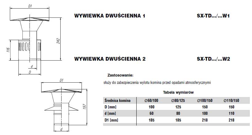 Służy do zabezpieczania wylotu komina przed opadami atmosferycznymi.