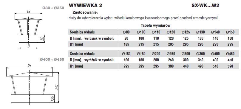Służy do zabezpieczania wylotu wkładu kominowego przed opadami atmosferycznymi.